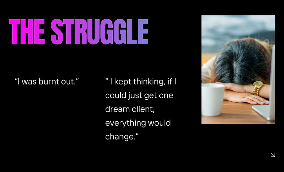 “I was burnt out. I kept thinking, if I could just get one dream client, everything would change.”